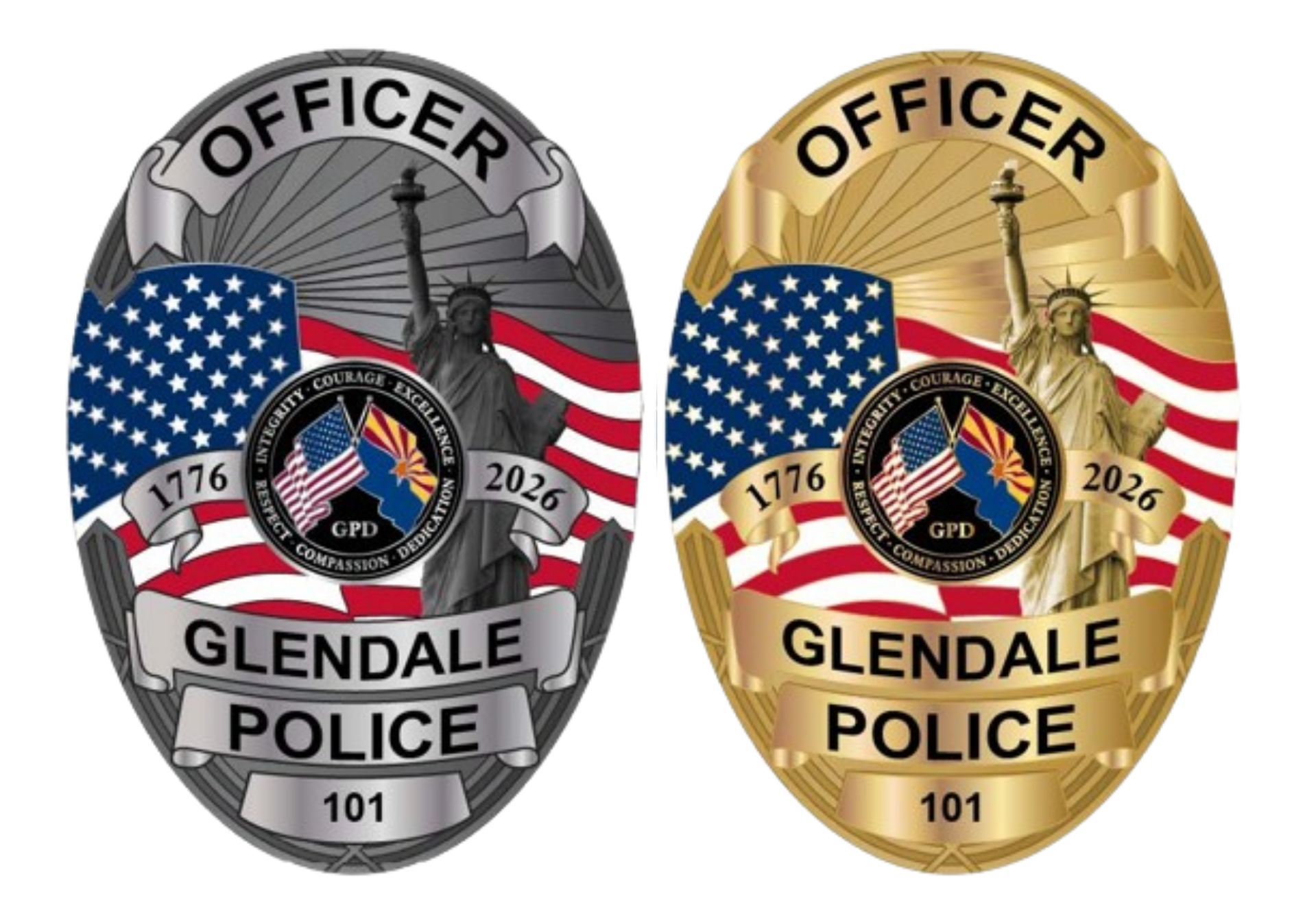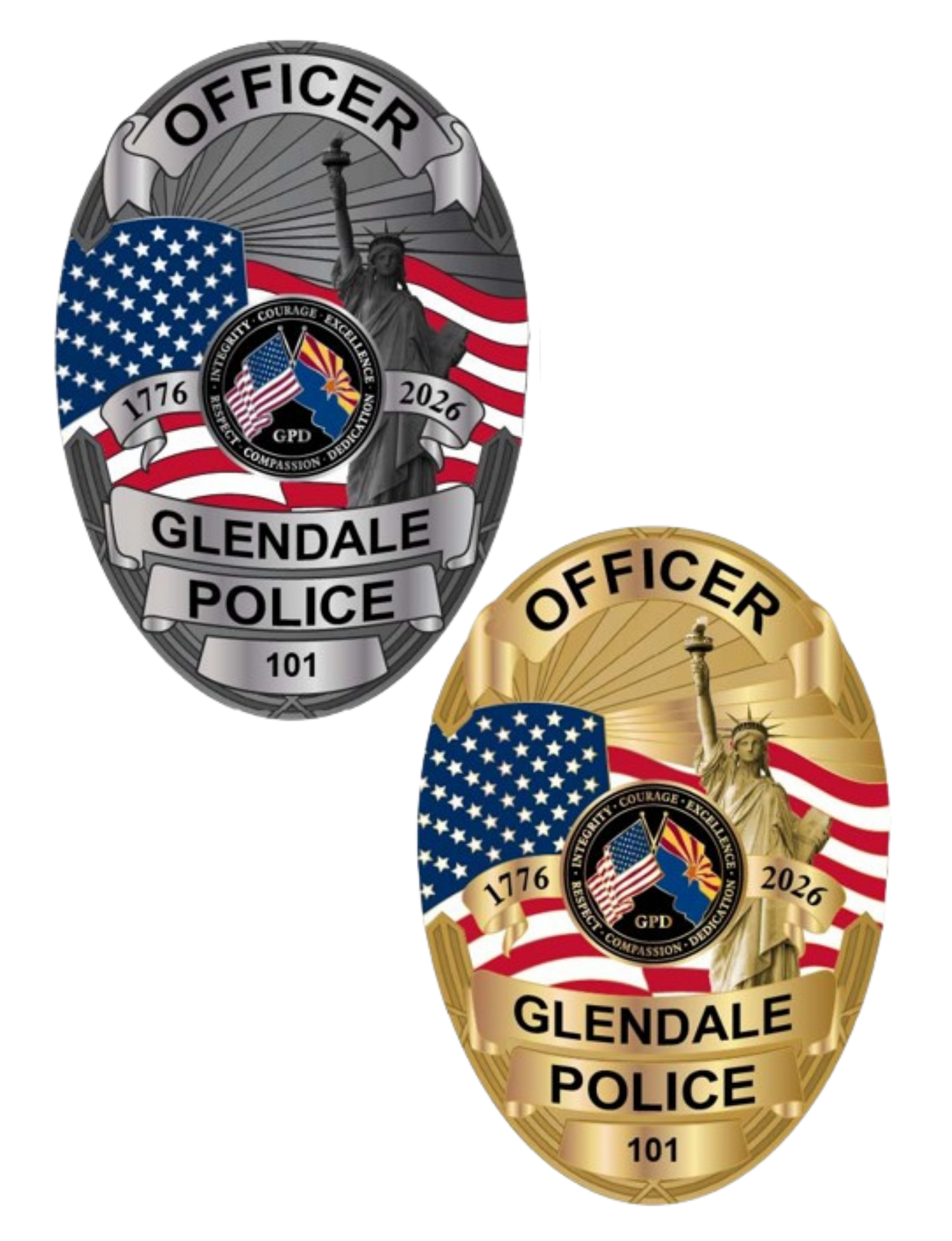 As part of the America 250th Commemorative Badge Program, Glendale Police Department employees may order a commemorative badge customized with their official title.